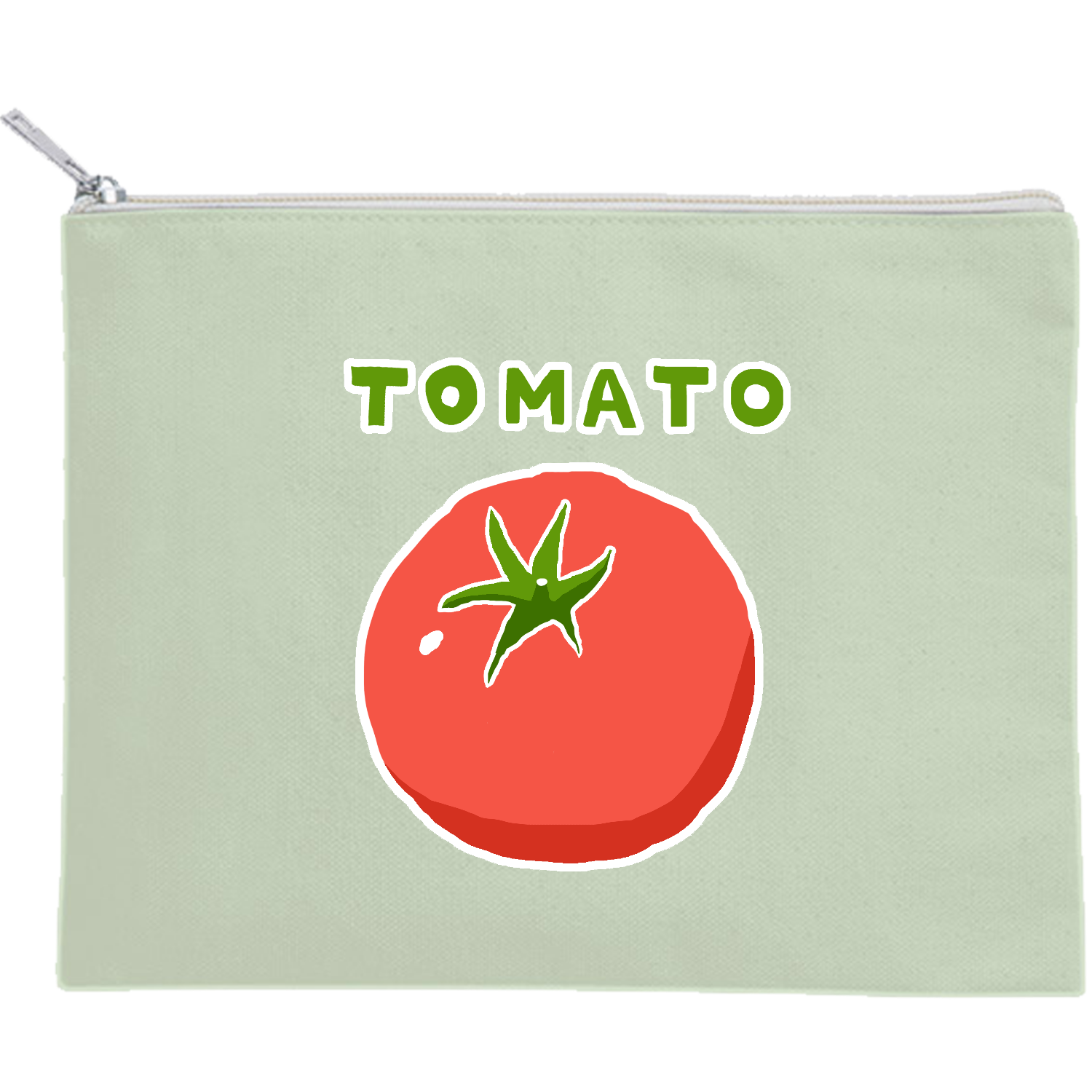 キャンバスフラットポーチ(M)【白プリント有】トマト好きのためのデザイン「TOMATO」